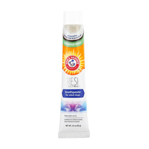 Just as with humans, dogs should have their teeth brushed daily. The Arm & Hammer adult dog toothpaste means tending to your dog's oral health is quick, easy and effective. Powered by baking soda, a natural mineral known to neutralise plaque, whiten teeth and freshen breath, and infused with coconut oil which makes the formula longer lasting. With concentrated enzymes, a little goes a long way.