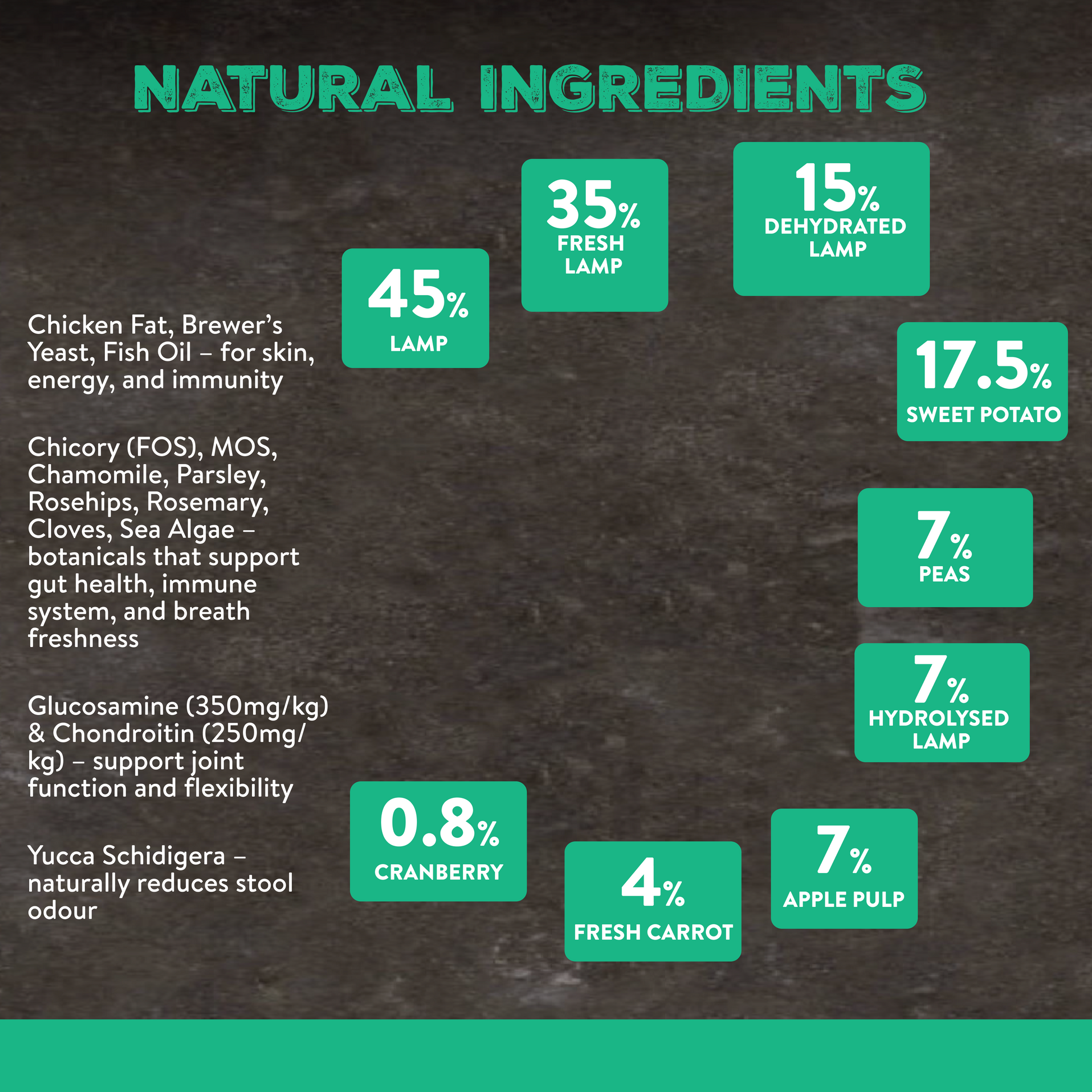 • 45% Lamb: High-quality protein for muscle growth and development.