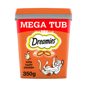 • Dreamies Mega Tub dried cat biscuits with Chicken 350g