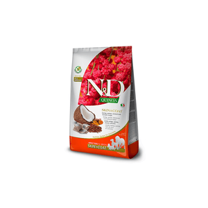 Farmina N&D Quinoa All Breeds Dry Dog Food (Skin & Coat Herring and Coconut) is a grain-free diet formulated to support skin and coat health for dogs of all breeds. This premium recipe combines herring with quinoa, coconut, and turmeric to provide essential nutrients for a glossy coat and healthy skin.