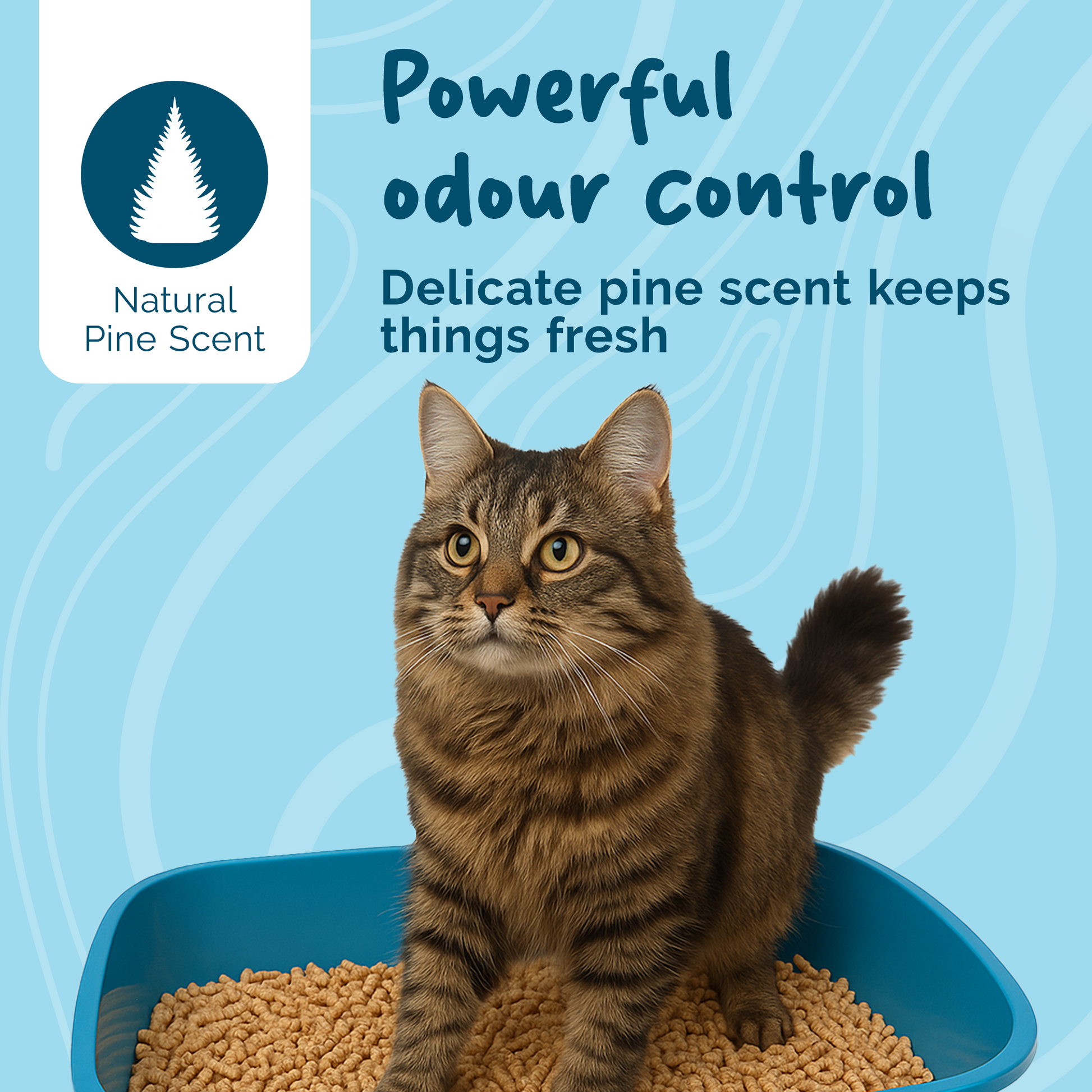Made from 100% natural, biodegradable softwood sawdust, this pine-scented litter offers long-lasting freshness and superior absorbency. The lightweight pellets quickly soak up moisture, absorbing up to three times more than standard litter, while the natural pine aroma helps neutralise unpleasant odours, keeping your home smelling clean.
