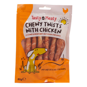 Treat your dog to the irresistible taste of our Tasty & Meaty Chicken Crunchy Twists Dog Treats. Bursting with rich, meaty flavour, these delicious dog chews are made with natural chicken and are free from artificial colours and flavours. Perfect for dogs who love to chew, these easy-to-digest dog treats provide a long-lasting, satisfying experience that keeps your dog entertained and engaged.