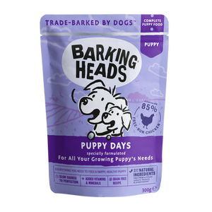 Barking Heads Puppy Days has been specially formulated for all your growing puppy's needs. This delicious grain-free recipe with added vitamins & minerals has been slow cooked to paw-fection, using only the best quality, natural ingredients. Packed with protein (85% free-run chicken!), this super yummy complete puppy food has been blended with vegetables and herbs for your newest family member.