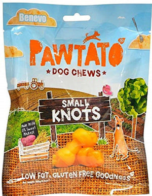 Pawtato Small Knots are made with 87% sweet potato! Rich in phytonutrients, sweet potato naturally contains a great variety of vitamins and minerals as well as fibre, which is good for the gut plus beta-carotene, a natural antioxidant. Only specially selected non-gm sweet potatoes, grown in rich and fertile farmland without the use of pesticides, go into Benevo Pawtato Chews.