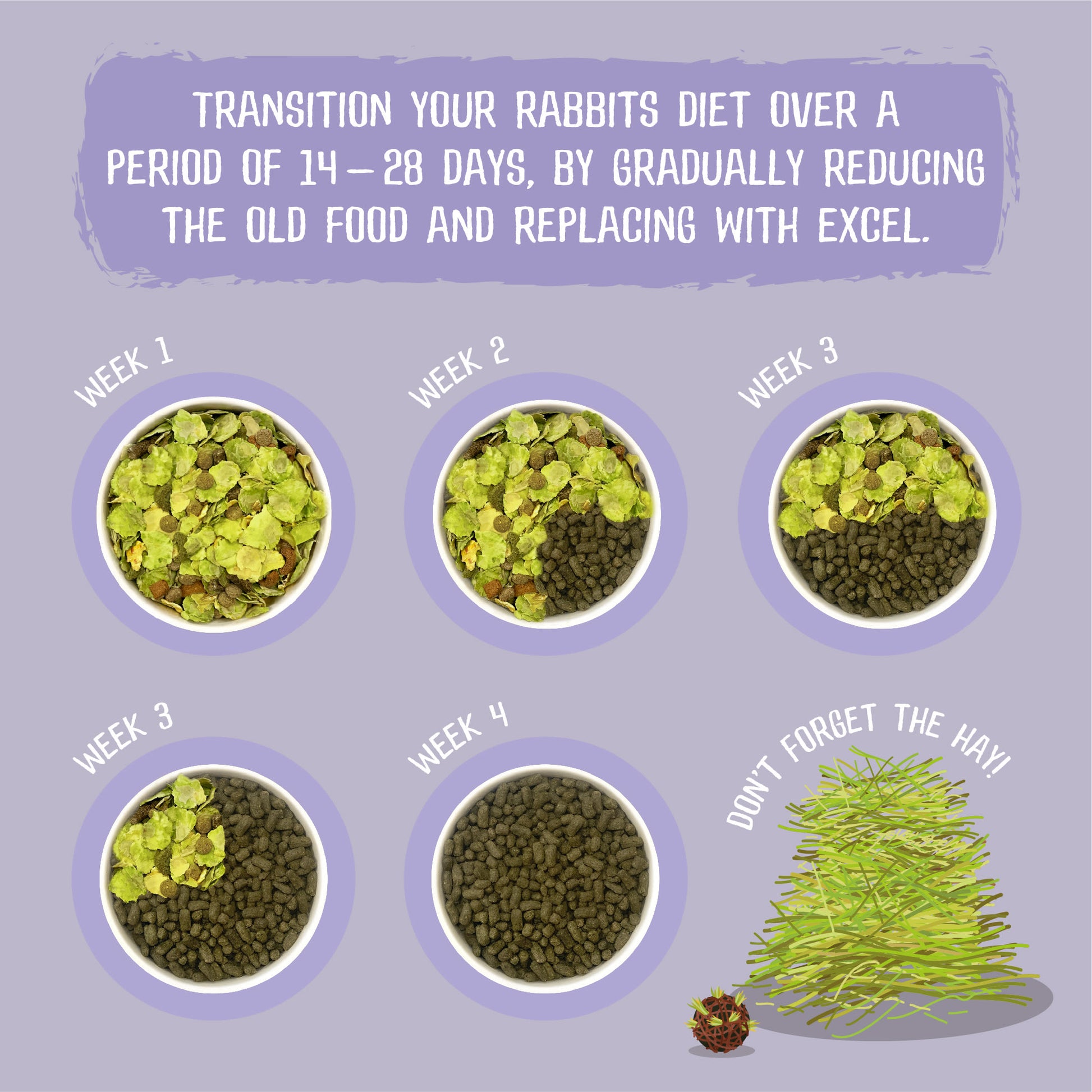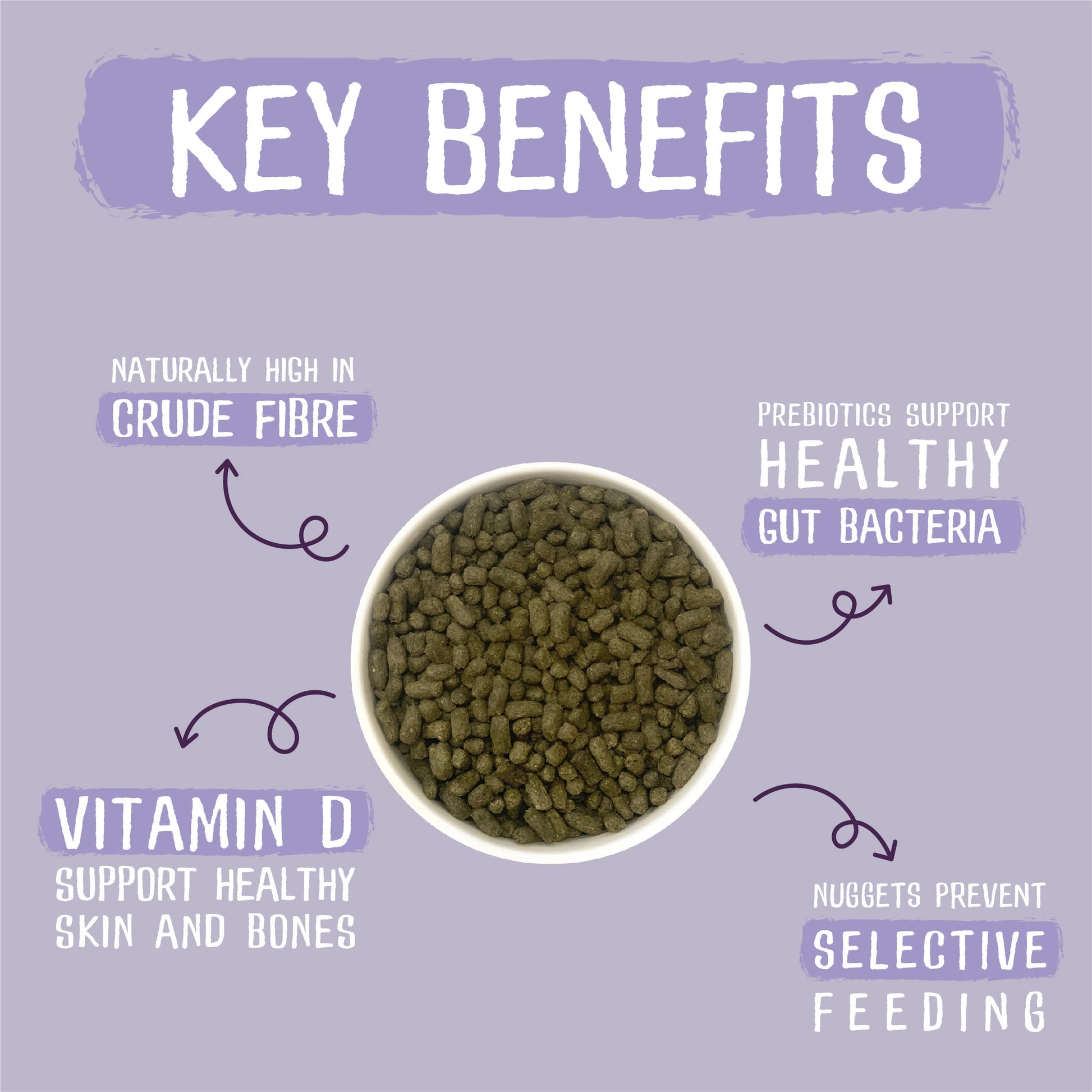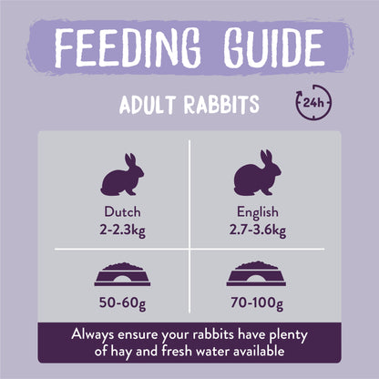 • 40% beneficial fibre - a measure of the digestible and indigestible fibre that’s essential in your rabbits’ diet.