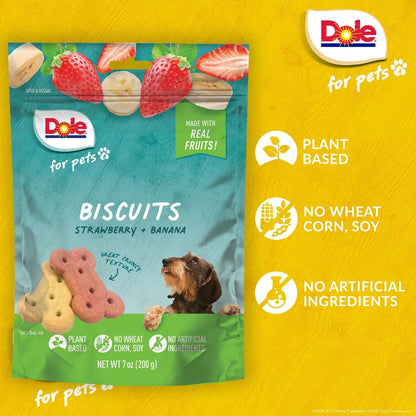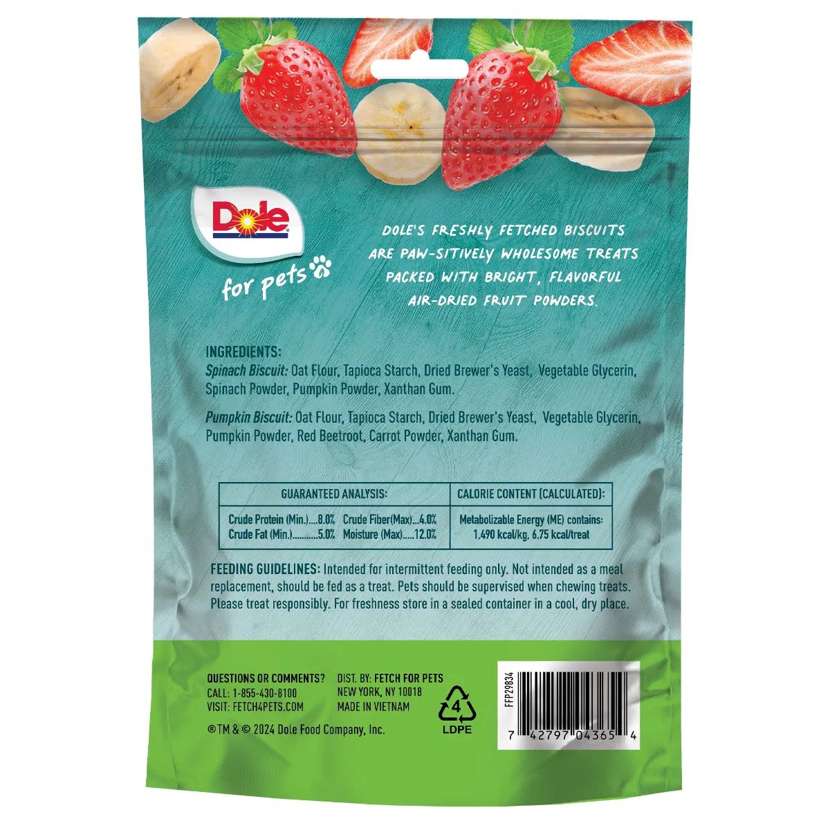 Dole Banana & Strawberry Dog Biscuits are a wholesome and exciting treat, perfect for reward time or training sessions. Made with real fruit and vegetable powders, these plant-based biscuits are naturally flavourful with no artificial ingredients, just pure goodness in every bite.