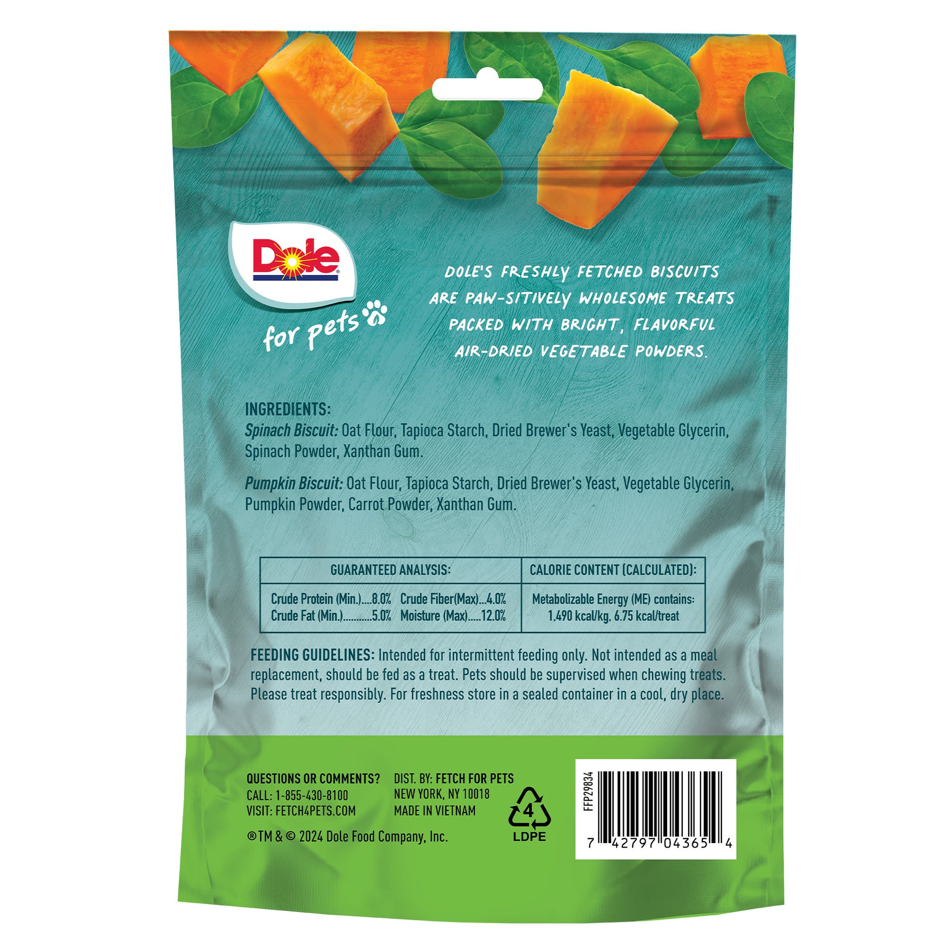 Dole Spinach & Pumpkin Dog Biscuits are a wholesome and exciting treat, perfect for reward time or training sessions. Made with real fruit and vegetable powders, these plant-based biscuits are naturally flavourful with no artificial ingredients, just pure goodness in every bite.
