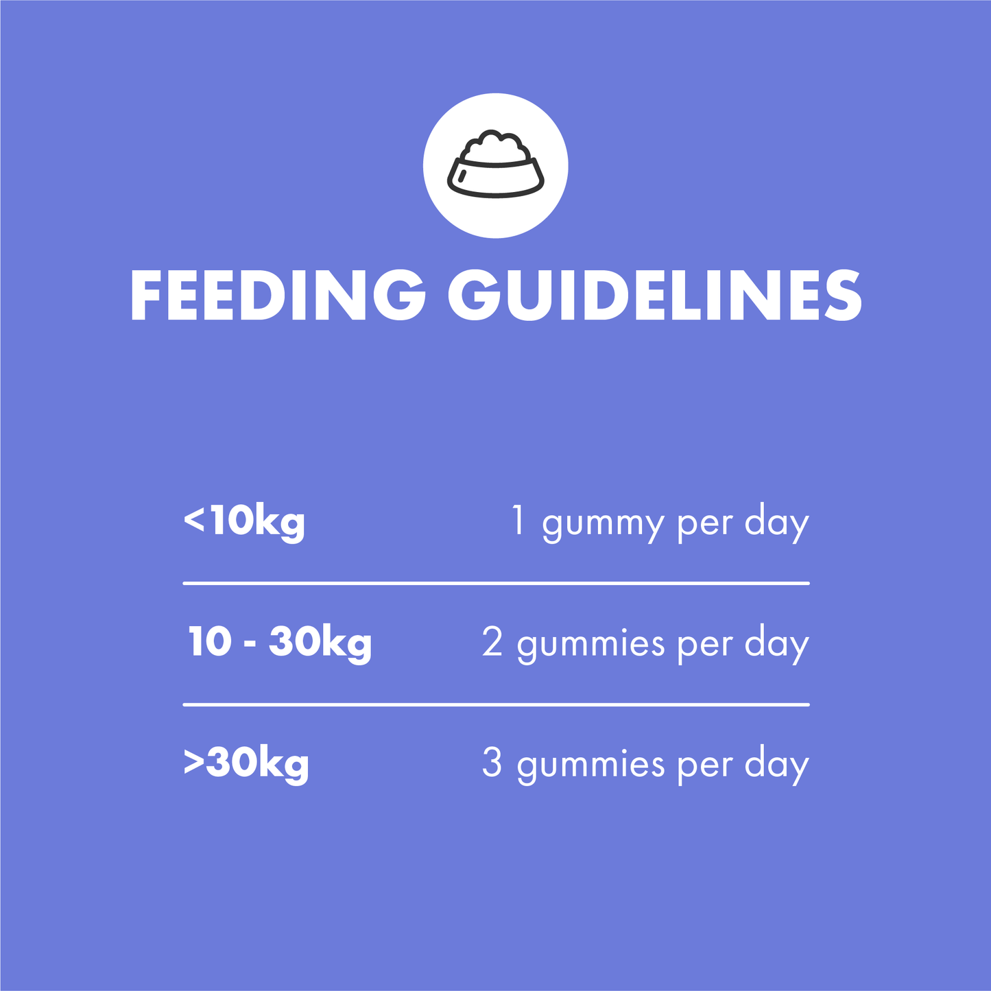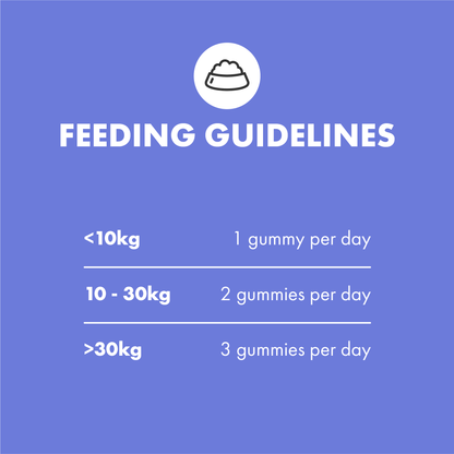Each dog multivitamin is sustainably sourced and manufactured in the EU, ensuring high-quality ingredients with minimal environmental impact. The gummies are non-sticky, non-greasy, and easy to chew—making daily supplementation simple, mess-free, and enjoyable for your pup.