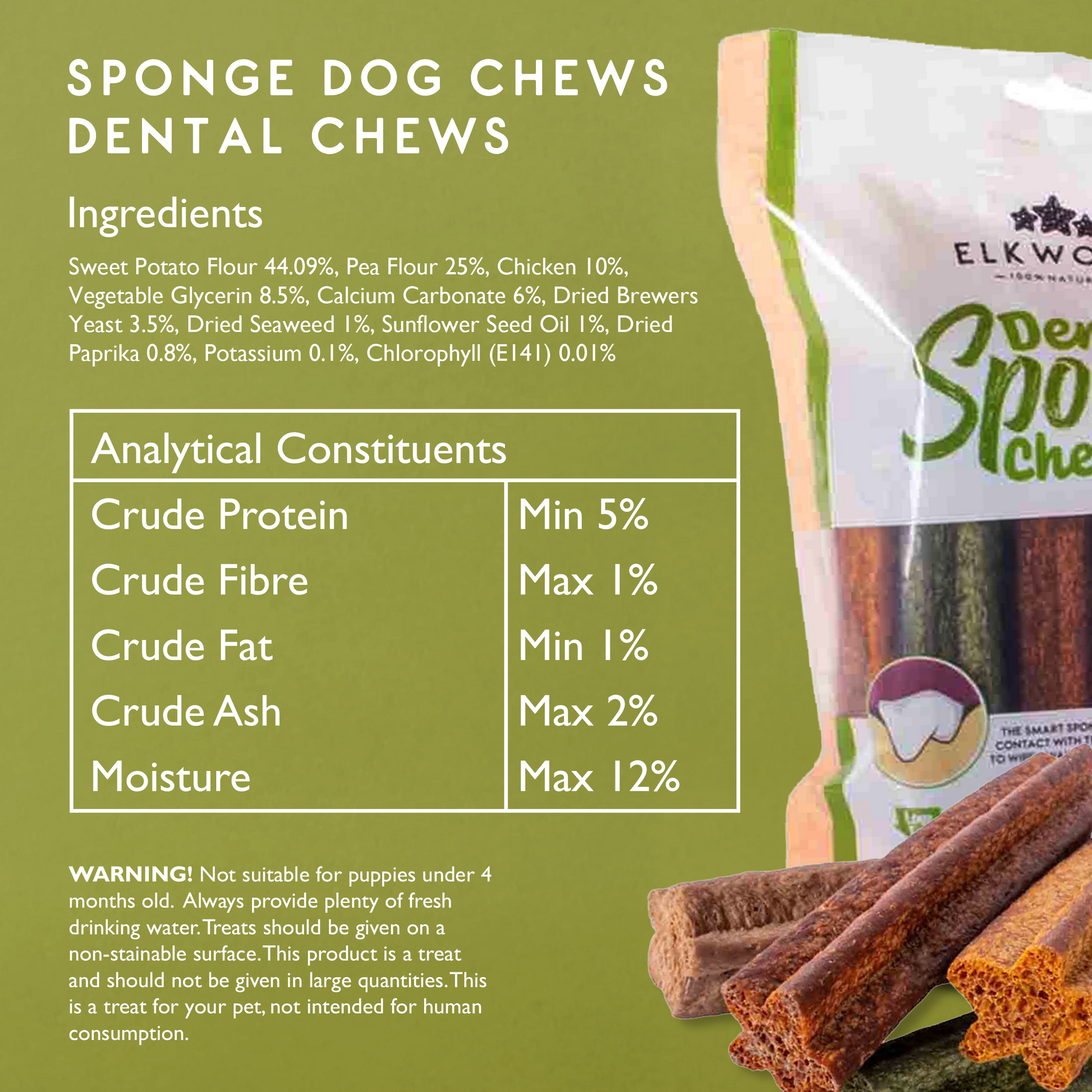 Treat your dog to a natural, effective way to maintain fresh breath and healthy gums with the Elkwood Sponge Dental Stick. Made from all-natural ingredients, this innovative treat features a unique spongy texture that helps wipe away plaque and reduce buildup, reaching the gumline for a thorough clean.
