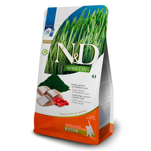 Farmina N&D Spirulina Kitten Dry Cat Food is crafted to meet the specific needs of kittens as well as gestating and lactating cats. This premium, grain-free formula blends the rich taste of herring with the powerful nutrients of spirulina and wolfberry, supporting immune health and aiding in healthy digestion for optimal growth.