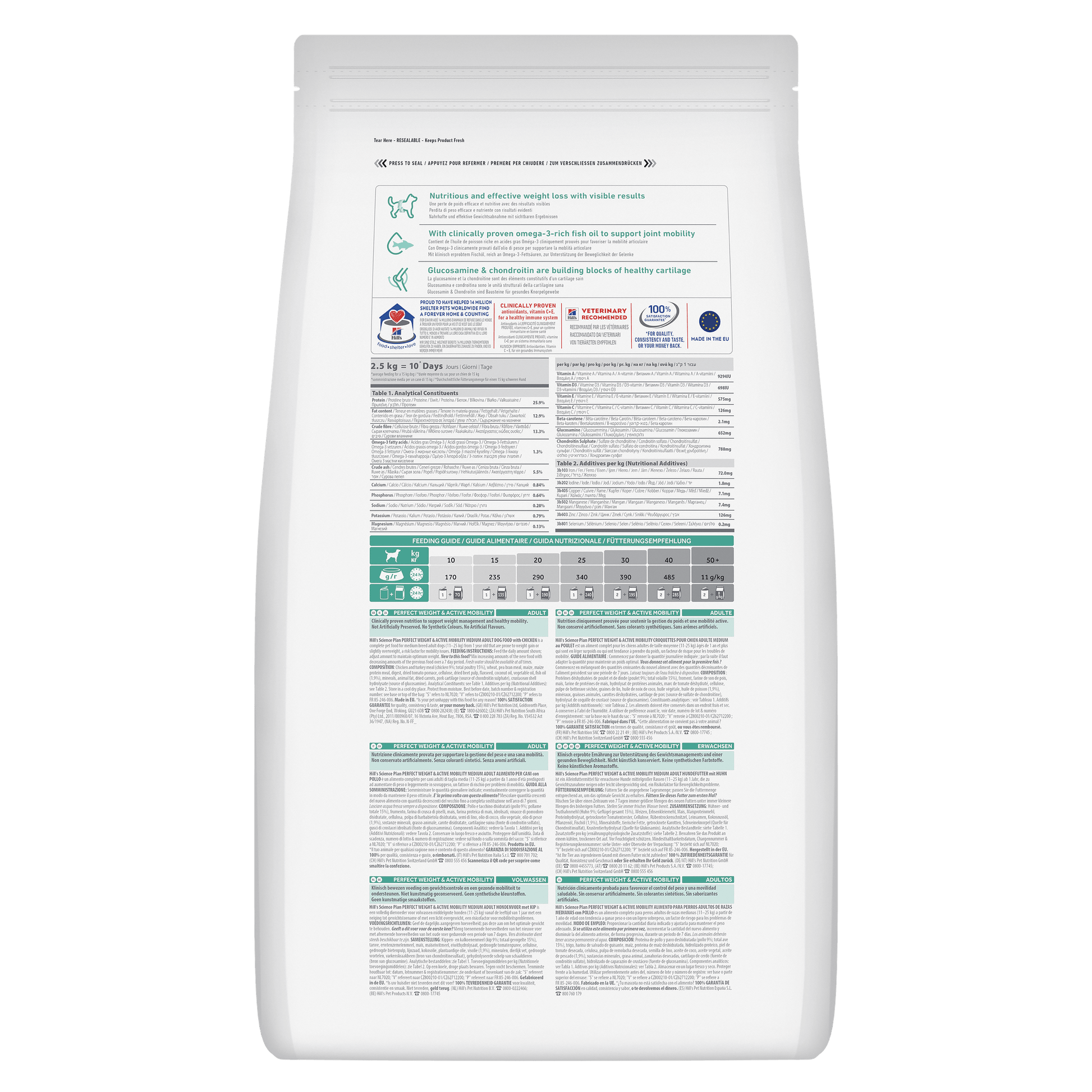 Hill's Science Plan Perfect Weight & Active Mobility Medium Adult dog food with Chicken provides delicious, breakthrough weight management nutrition that your full-grown dog can enjoy. With protein for lean muscle maintenance, and clinically proven omega-3 rich fish oil to support joint mobility, this weight control dog food is the perfect addition to your adult dog's bowl. This healthy weight dog food is formulated with decades of cutting-edge research to be a great-tasting meal your grown large dog can truly enjoy.
