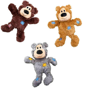 KONG Wild Knots Bears are soft & cuddly on the outside while durable & strong on the inside. The internal knotted rope skeleton satisfies dog's natural instincts and the reinforced plush body provides extra durability. The knots have less stuffing for less mess and they squeak.