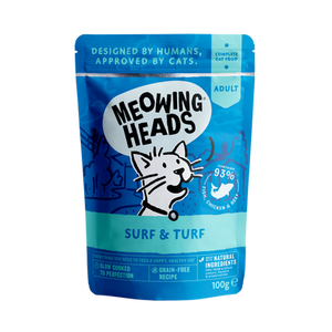 Meowing Heads Surf & Turf Adult Wet Cat Food in Pouches - Fish, Chicken & Beef