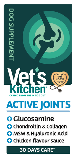 Vet's Kitchen Active Joints is a unique way to give your dog a joint supplement. Containing glucosamine, chondroitin, MSM, hyaluronic acid and collagen this delicious chicken sauce comes in a squeezy bottle making it easy to administer. One bottle lasts a medium dog 30 days. Having our own on-site first opinion veterinary practice we see hundreds of pets everyday. Our vets and nurses understand their health needs better than anyone so we take this knowledge and vet know-how and add it into every bag of Vet's Kitchen food.