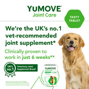 Recommended for dogs starting to show the early signs of stiffness, YuMOVE Joint Care for Adult Dogs works to keep your dog active for life in three ways – soothing stiff joints, supporting joint structure and helping mobility. The best part? You'll see visible results in just 6 weeks.*